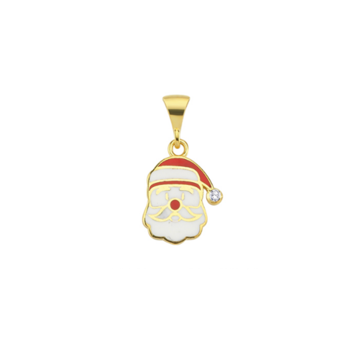 Noel Baba Figürü Mine İşlemeli 14K Altın Çocuk Kolye Ucu