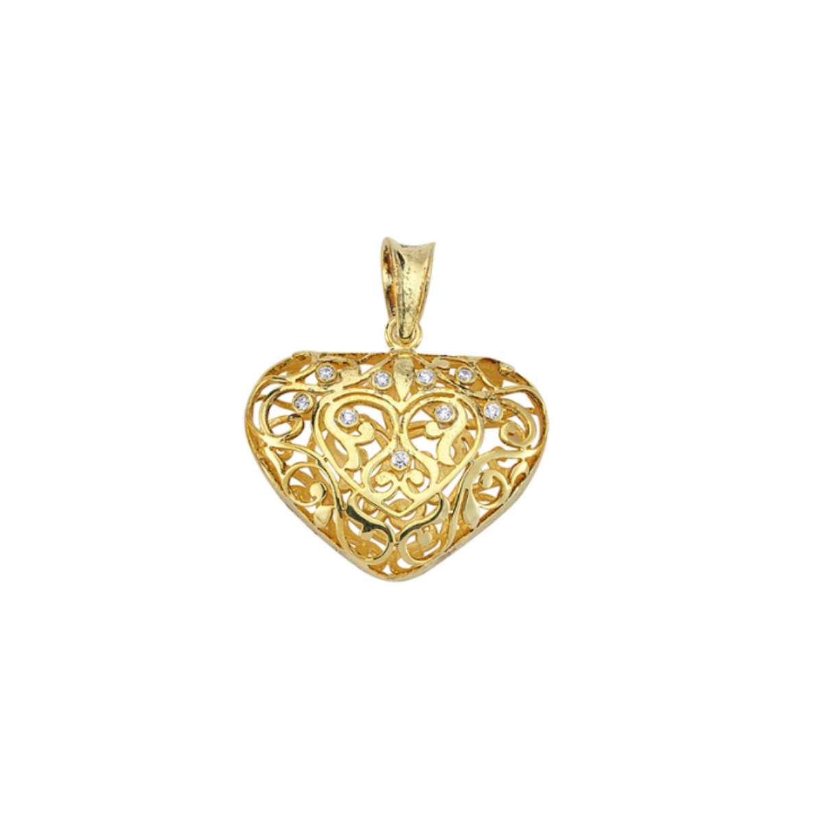 Taş Detaylı Kalp 14K Altın Kolye Ucu